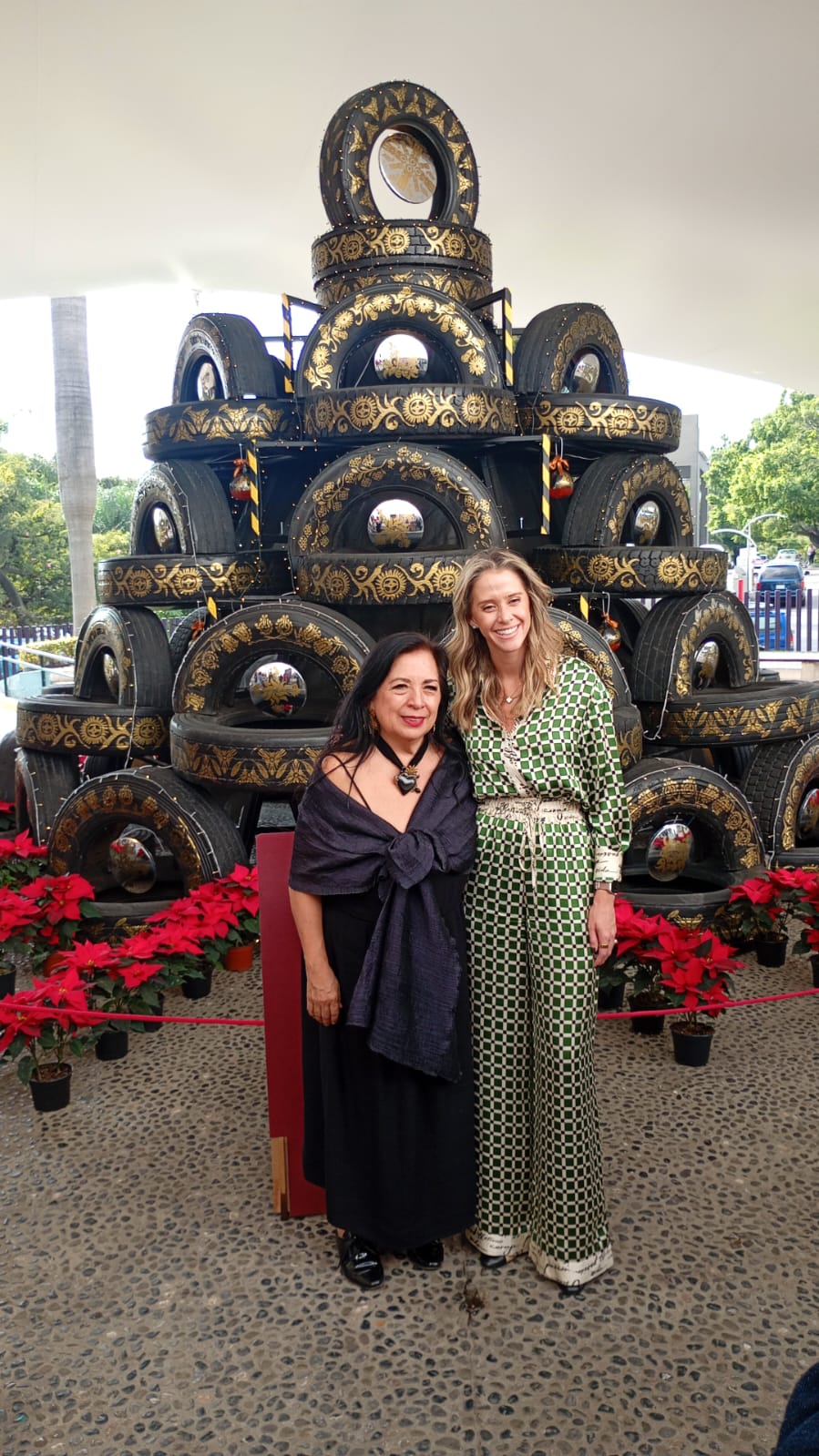 Por su parte, la creadora de la obra, Betsabeé Romero, profundizó en su proceso artístico durante la charla. Explicó cómo transformó materiales asociados al desgaste urbano —35 llantas completas y 33 medias llantas— en un símbolo de vida de 6 metros de altura. “Esta instalación nos recuerda que hasta lo que parece más sucio e inservible puede tener un segundo ciclo y germinar en un árbol frondoso”, comentó la artista, detallando el uso de vinil dorado, espejos y luz cálida para cambiar la narrativa del hule negro hacia la vitalidad de la naturaleza.