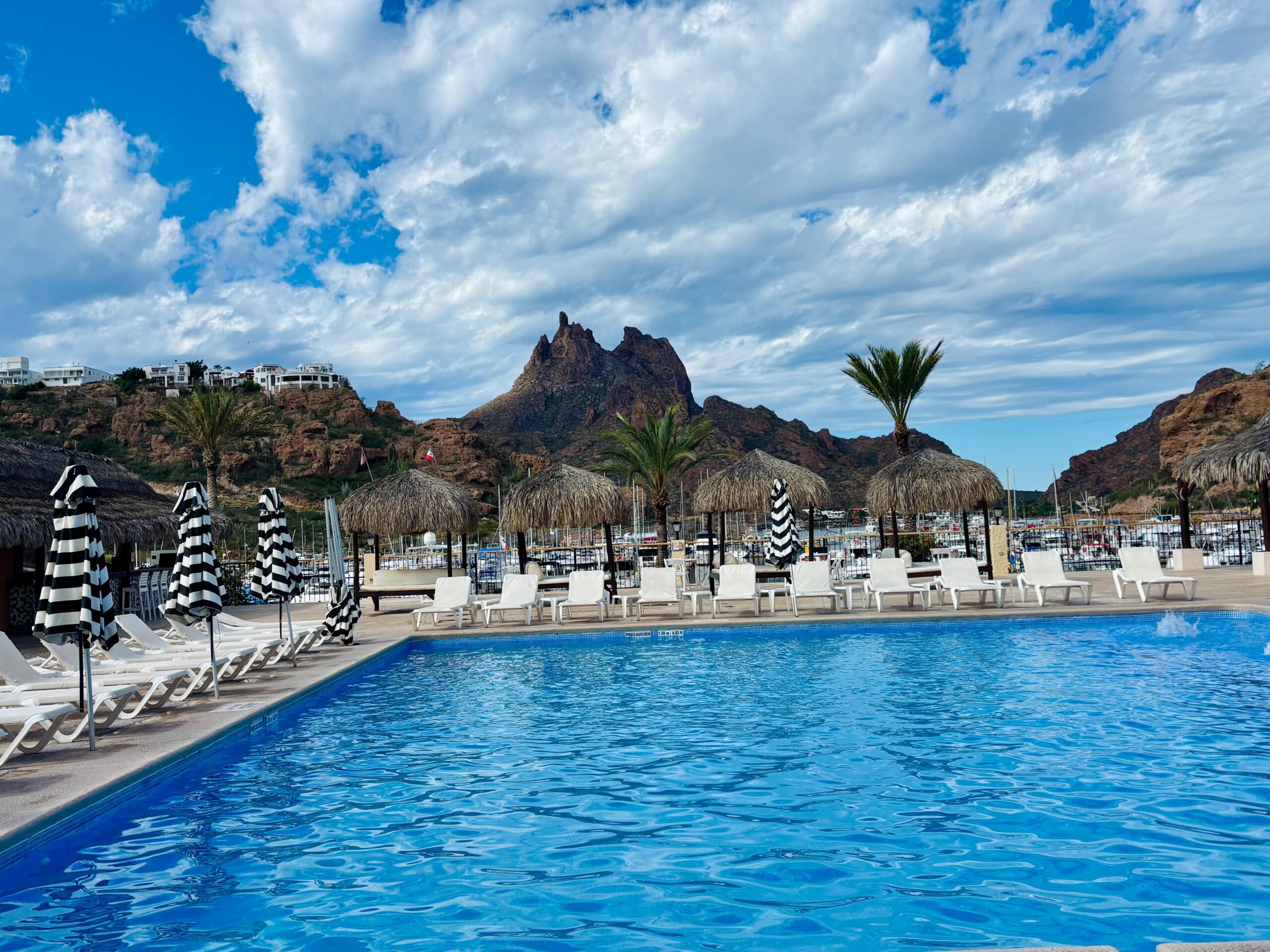 El Pool Bar, por su parte, ofrece una propuesta más casual con snacks, tacos de asada, bebidas tropicales y cervezas frías, todo acompañado por el paisaje del Tetakawi y la marina.